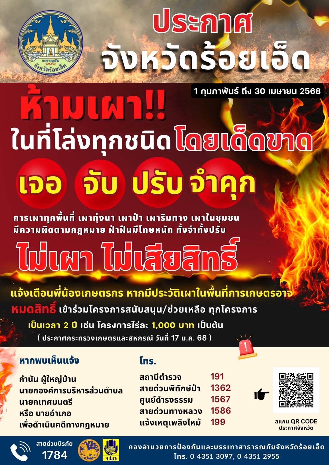 ประกาศ ห้ามเผาในที่ไล่งทุกชนิดโดยเด็ดขาด เจอ จับ ปรับ จำคุก